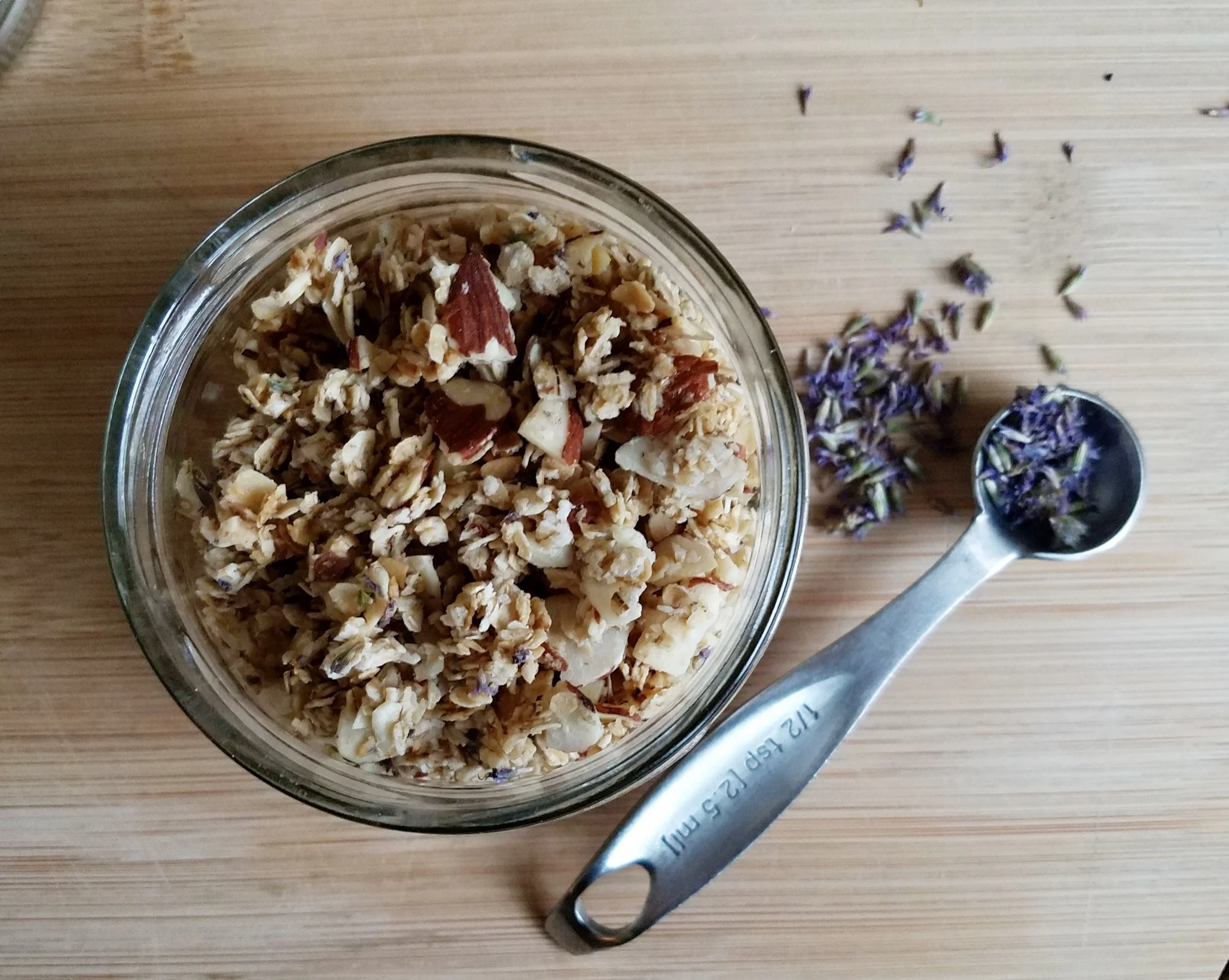 While I like fennel in recipes, I don’t necessary enjoy the flavor of anise, black jelly beans were always the ones I passed up in the Easter baskets of my youth. The leaves of Anise Hyssop can be used in teas or added to salads. The beautiful purple buds are what enticed me to work on a recipe. They have a more concentrated anise flavor to them. Granola seemed like a good fit for my new found flavor. The anise flavor is subtle.